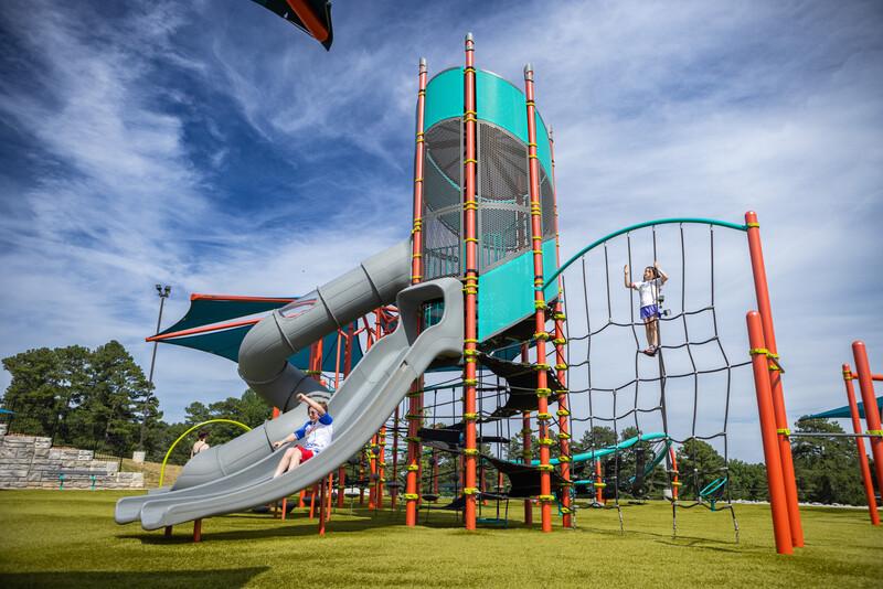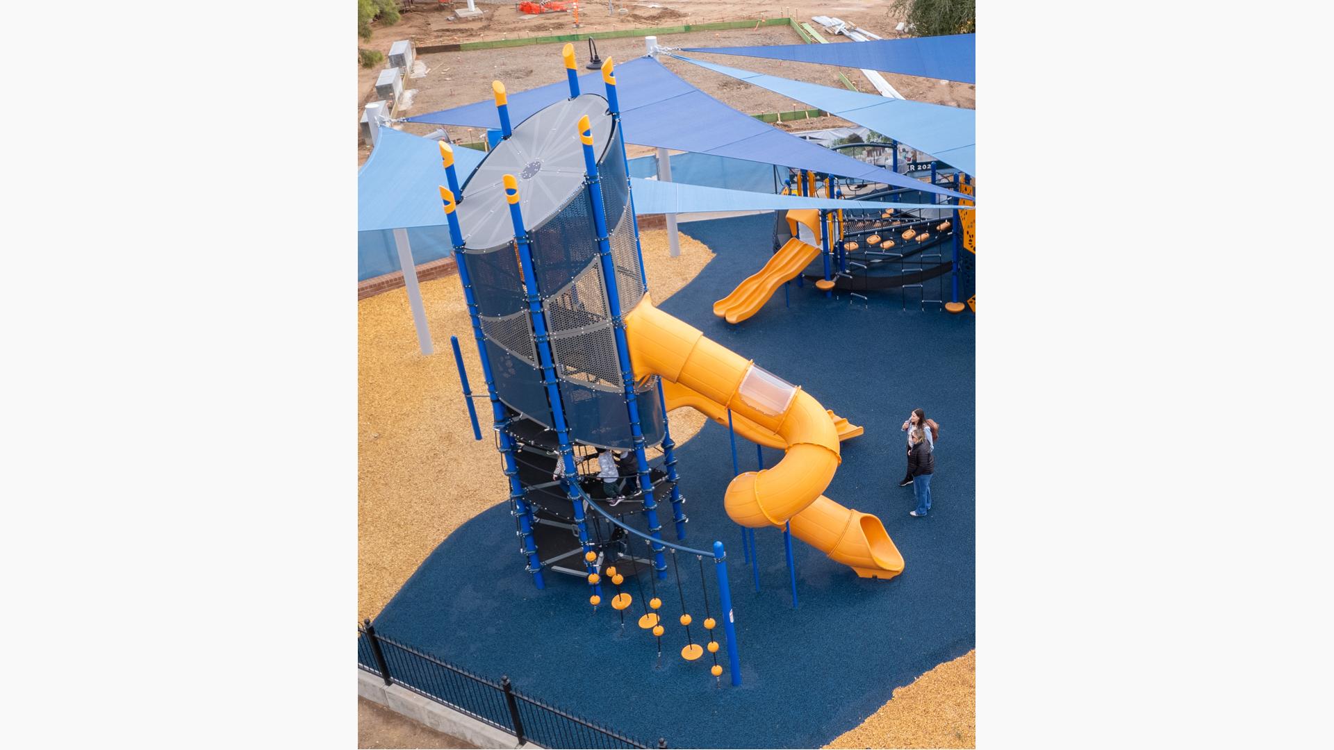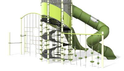 New heights in Netplex® for new heights of fun! The center spiral belting with grippy texture provides an easy way for kids of all abilities to climb to the top for a whooshy ride down two slides. Now everyone can enjoy the spectacular view from up top while those watching below have perfect sightlines to all the activity.