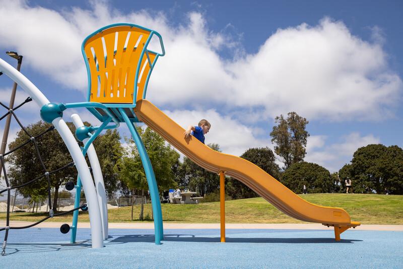 The Evos® Surf Slide includes protective barriers and a unique slip resistant, marine-grade deck surface to keep kids safe. The polyethylene bedway has a uniquely designed end that helps kids exit safely.Features