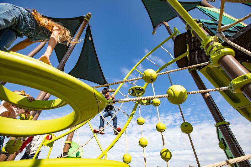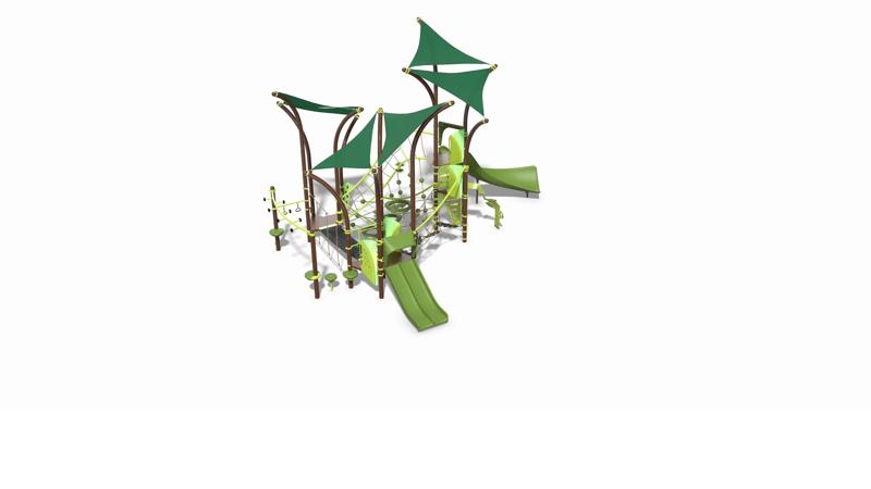 Such a great range of interconnected activities at multiple levels will spark hours of imaginative and energetic play, all protected by plenty of integrated shade. Whether it’s a tree fort, a forest city or an agility race in the sky, it will always be a beacon for your playground.