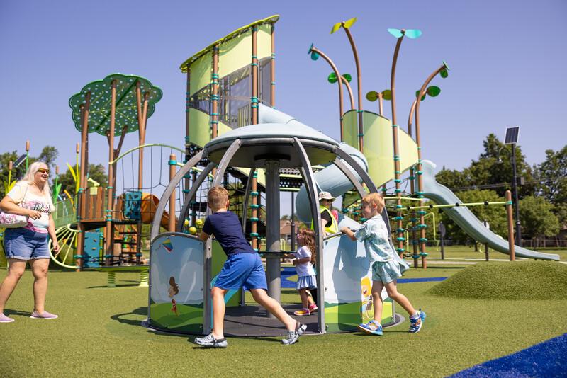 Kids of all abilities can enjoy the fun of spinning in the themed We-Go-Round® HDG with DigiFuse® panels. It can be turned from inside or outside, and the Hot Dip Galvanized steel provides an extra layer of corrosion protection in harsh coastal environments.