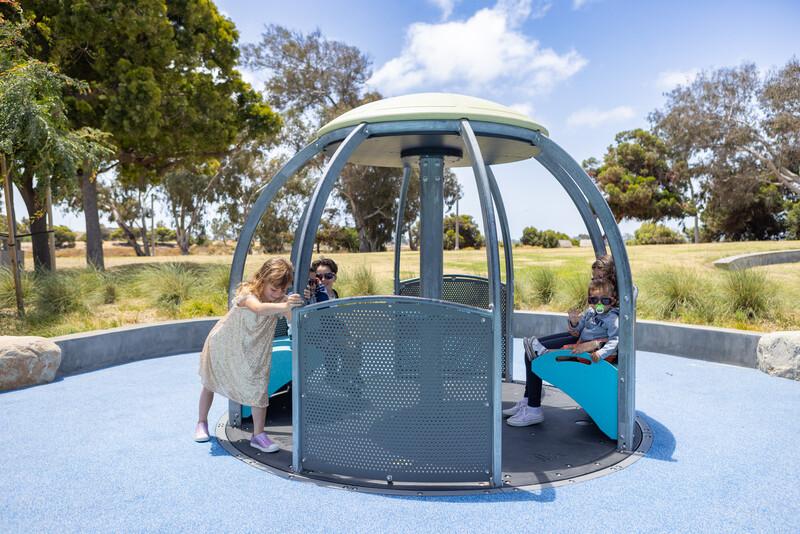 The We-Go-Round® HDG is a wheelchair-accessible whirl that enables kids of all abilities to play together and experience spinning fun. Hot Dip Galvanized (HDG) steel provides extra protection against corrosion in harsh coastal environments.