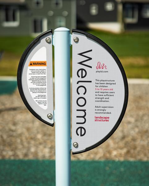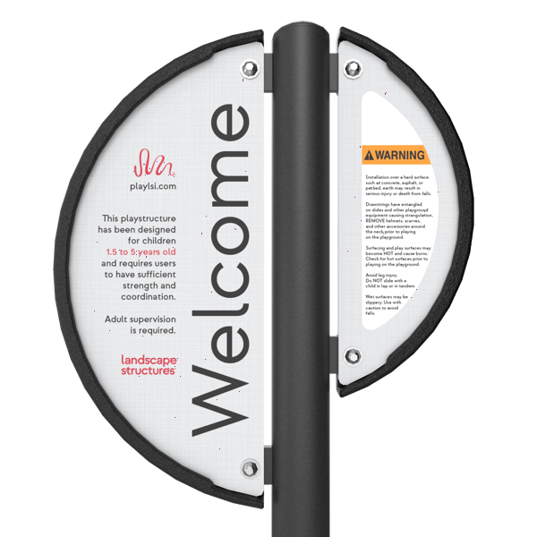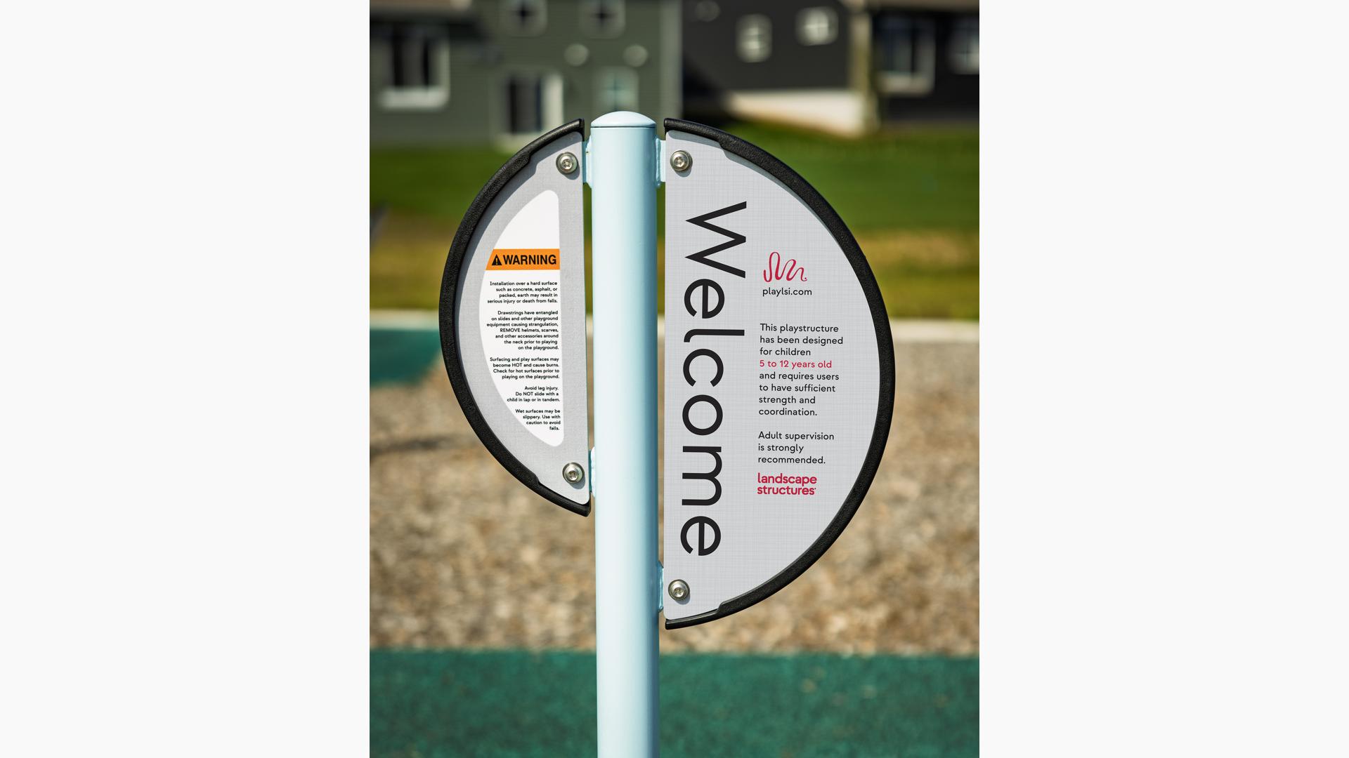Greet playground visitors with a helpful Welcome Sign, prominently displaying the playsystem age range and safety information for kids and their supervisors, enhancing the value of your purchase.
