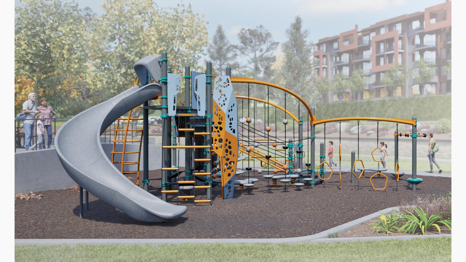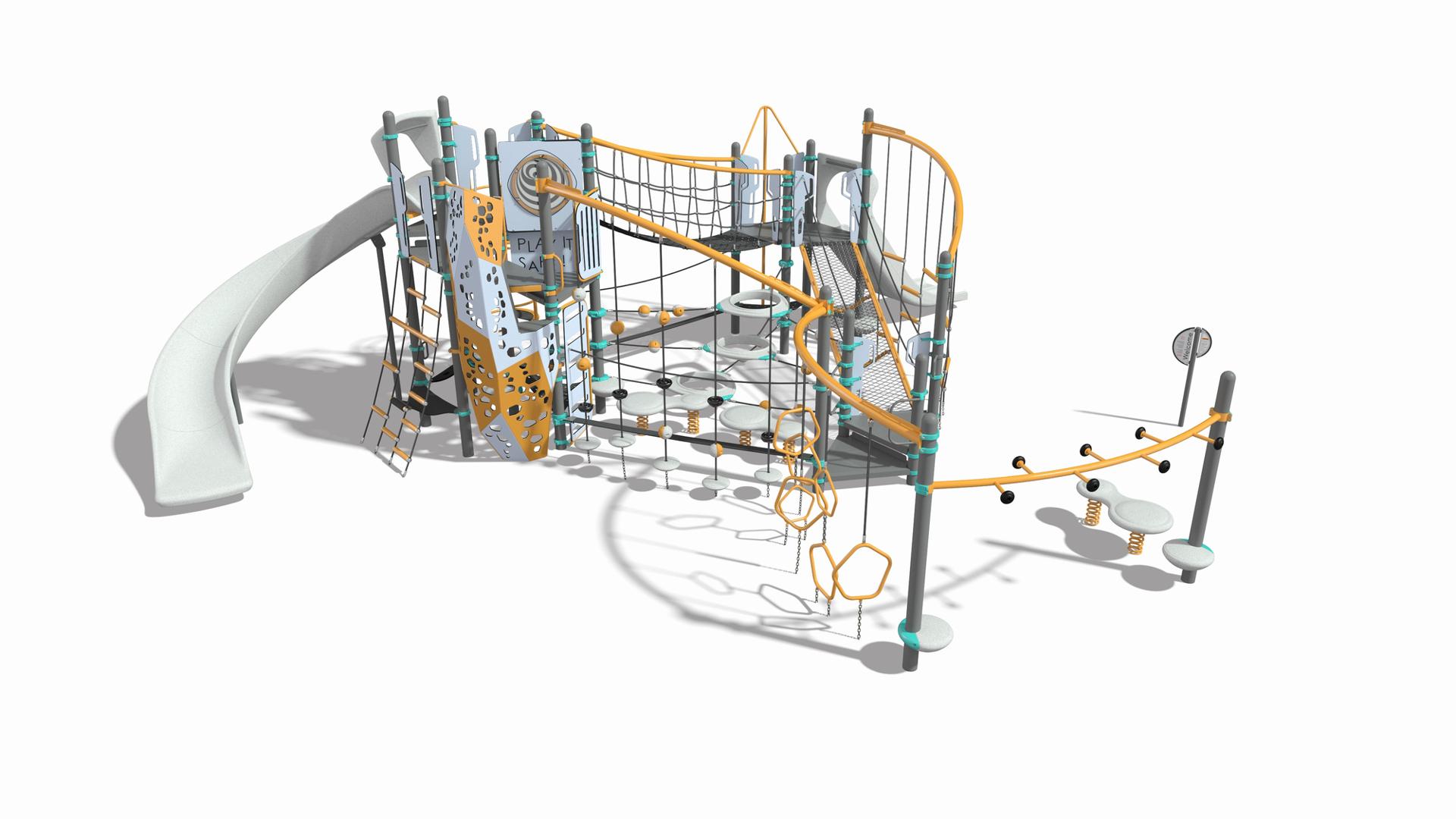 The Altitude Mini packs big climbs and thrilling movement into a compact footprint, proving that what's small can be mighty. Kids navigate unscripted pathways up and over on the O-Zone® Array, Crux™ and Crossbar™ Climbers, while connectors like the Pentagon Bridge and SwiggleKnots® Bridge Inclined add responsive pathways that test balance, coordination and problem-solving. Natural momentum carries visitors to the top of the FlowWinder™ Slide creating fast, downward thrills. This jam-packed structure encourages parallel play, choice-driven exploration and responsive movement, bringing value to every step.