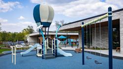 Contact Your ConsultantFour unique play environments create distinct little worlds for children aged 6 months through 5 years to explore. Perched inside a kid-sized jogging track, a SmartPlay® Breeze® gets ready for takeoff, inviting kids 2 to 5 to hop on board. With bouncy belting and two slides, the Breeze encourages kids of all abilities to soar. They can chat between the brightly colored pinwheel Talk Tubes or play music on the nearby Rhapsody® instruments. In the next play space, a turquoise blue PlayShaper® structure offers lots of options for climbing and sliding, while providing learning panels to keep kids’ minds engaged and curious. For tots, a soft lavender PlayShaper structure encourages safe crawling and gentle sliding in a “just right” play environment for the littlest explorers. Inside the building, a climbing wall and stairs lead to a twisty slide for year-round playtime.