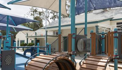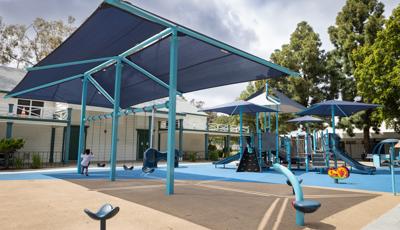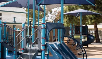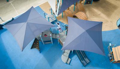 Contact Your ConsultantThis delightful playground for 2- to 5-year-olds has an activity for every child. Kids can climb into the playstructure through multiple climbing routes, and slide down a straight slide, a twisty slide or an inclusive Rollerslide. Activity panels and Rhapsody® musical instruments are scattered throughout the area, offering children the opportunity for sensory exploration and the inclusive We-Go-Round® is a merry-go-round that all can enjoy. A multiple-bay swing set means four kids can swing at once and a fun clubhouse with the sign “Kids Only” provides a place for friends to gather. SkyWays® shade structures offer protection from the sun while unitary surfacing is a soft landing underfoot.