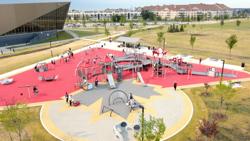 Contact Your ConsultantClaireview District Park, built by the community in partnership with Jumpstart Charities, creates an imaginative and inclusive play space where children of all abilities can play. The inclusive playground design, including an extensive ramp system, offers play structures for kids of all ages and abilities so all individuals can play together in the center of the action. Inclusive-themed panels fill the park with inspirational images of children of every ability playing sports and being active with their friends. Many freestanding play elements including the Sway Fun® Glider, We-Saw® and We-Go-Round® provide even more fun for everyone. Quiet spaces with interactive sensory panels are also built into the structure and throughout the park, sparking children’s imagination using their senses.