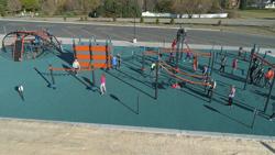 [video: scene fades into an elevated view of the entire PebbleFlex safety surfaced FitCore obstacle course and Crab Trap climber. Children play on all the many actives. Camera switch to inside view of the Crab Trap where children climb on the many different rope climbers. Camera switches and focuses on a girl’s boots as she steps on the outer cargo net of the Crab Trap. Scene switches to a view across the play area of three children hang and climb up the Extreme Jump Hang cargo net climber. Scene switches to a boy climbing up the Rope Climber. Scene switches to the camera panning up with a boy as he climbs up the Vertical Cargo Net Climb. Camera switches to a full side view of two girls climbing down the Extreme Jump Hang cargo net climber. Camera switches to a boy climbing on the Rope Climb. He reaches the top to ring the accomplishment bell. Camera switches to a girl as she climbs on the cargo net of the Extreme Jump. Scene switches to a line of boys wait their turn to attempt the Spiderwalk wall. One of the boys explains the route they should take for the obstacle course. Scene switches to an aerial view panning over the top of the entire play area as children run the obstacle course below. Scene switches to a young girl scooches through the Spiderwalk wall towards the camera. A line of children waits behind her waiting their turn. Camera switches back to the bird’s eye view pan over the top of the play area as children play. Scene switch to a girl as she climbs across the braided belt bridge inside the Crab Trap climber. The camera focuses on the girl’s tennis shoes as she walks across the braided belt bridge inside the Crab Trap climber. Scene switches to children climbing up either side of the A Frame Cargo net climber. Scene switches to the camera fallowing a girl as she runs and jumps over the different sized hurtles. Camera switches back to bird’s eye view panning over the top of the end of the play area. Camera switches back to a girl as she jumps over a low hurtle then ducks under then next. Scene switches to a girl climbing through the Spiderwalk wall towards the camera. Scene switches to a girl climbing up a wall climber on the Crab Trap play structure. Camera switches to the inside of the Crab Trap as children climb inside and on the outside cargo nets. Camera pans across the top of the Crab Trap as children climb on the top cargo nets and inside ropes below. Camera switches to a full elevated view of the play area with Crab Trap and FitCore Extreme obstacle course. Scene switches to a top down view of a boy as he climbs up towards the camera on the outer wall climb on the Crab Trap. A boy stands on the elevated belted walk way inside the Crab Trap. Two girls climb up towards him on the inner rope climbers. A child yells [Go, go!] Camera pans up through the cargo nets of the Crab Trap where a girl climbs on the top. Scene switches to a boy climbing the Rope Climb and rings the accomplishment bell. A second boy climbing the rope rings the accomplishment bell. A third boy climbing the rope rings the accomplishment bell. Scene switches to an elevated side panning view across the FitCore Extreme obstacle course. A line of girl’s high step through the Extreme High Step agility playground activity. The camera focuses on a girl’s feet as they high step through the cargo net. Camera switches and focuses on a girl’s feet as she steps from one balance beam to the next. Scene switches as a boy wears a point of view camera as he climbs on the ropes inside the Crab Trap. Camera switches to children walking across the inclined balance beams. A boy climbs across the FitCore Extreme Angled Overhead Ladder monkey bar set. Camera switch to side view of the Angled Overhead Ladder as a girl swings across the rungs. Scene switch to an overhead view of children playing at the Spiderwalk wall and the Over Under hurdle bars. Camera zooms in on two girls as they reposition themselves on the Spiderwalk wall. One of the girl yells to her friend [Are you coming?]