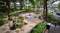 Built for inclusivity, the playground offers extensive ramping, accessible surfacing, and sensory-rich experiences that welcome children of all abilities, along with caregivers and multigenerational visitors. With its earthy surfacing, “pond-like” blue spray area, and leafy canopy effect, Dyckman Rest Playground turns a compact city site into a lush retreat where nature and play thrive together.
