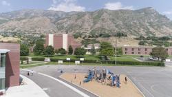 Video featuring Edgemont Elementary School's outdoor playground next to Wasatch Mountain Range in Provo Utah.