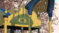 [video: children run to the Oz themed playground. Camera pans over the top of two Cozy Domes with the main playground in the background. A girl stands up after exiting a Cozy Dome. A girl runs and jumps off a Wobble Pod as children climb on the O-Zone Climber behind her. A full view of the Oz playground structure with children playing on it. A girl ducks into the middle of a Gyro Twister. A boy pulls himself up to stand on a O-Zone Climber ring. Camera zooms in tight on a child’s face as they look at the camera and smirk. Two twin baby girls stand and look up at the playground. Camera close-up of a girl’s feet as she steps on the fake playground grass surfacing. A Color Splash Wheel Panel spins quickly from children spinning it. A boy looks up at the panel as it spins. Camera switches to the side of the playground where the Spyro Slide is located. A young girl smiles and begins to quickly walk towards the camera. A girl sits on top of a Cozy Dome. Camera pans right to left over both Cozy Domes with children sitting on the top of them.]