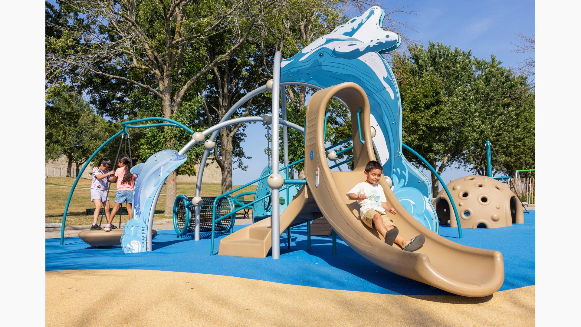 Contact Your ConsultantSet along the scenic waterfront of Castle Island in South Boston, the Robert M. Greene Memorial Playground honors a legacy of service while inviting a new generation into movement-rich play. Framed by sweeping harbor views and historic surroundings, the playground unfolds as an open, sculptural landscape where a strong sense of place shapes every moment of play.