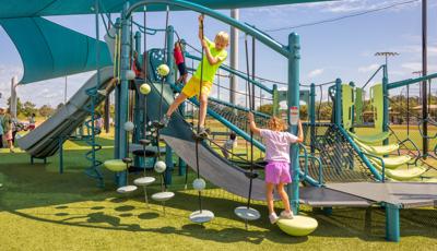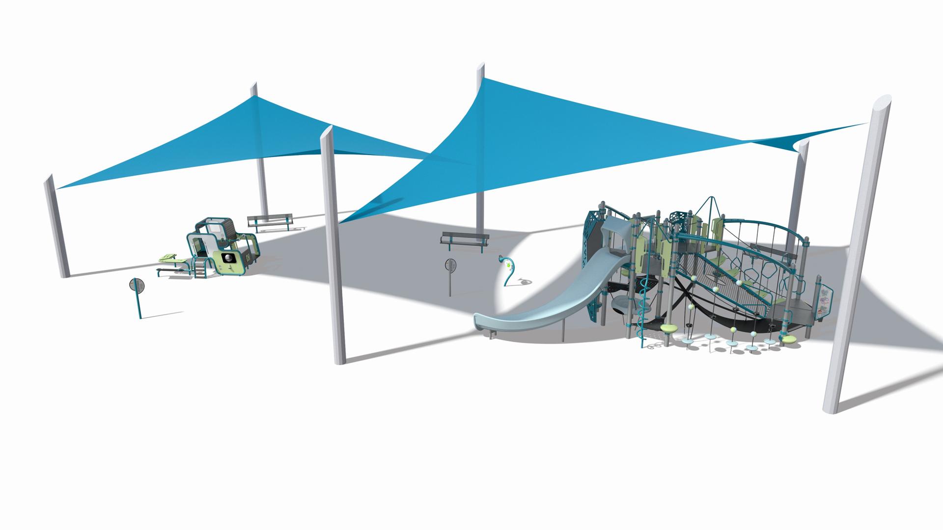 What's best, beautiful SkyWays® shade sails provide protection from the heat and sun, so the play doesn't have to stop.