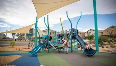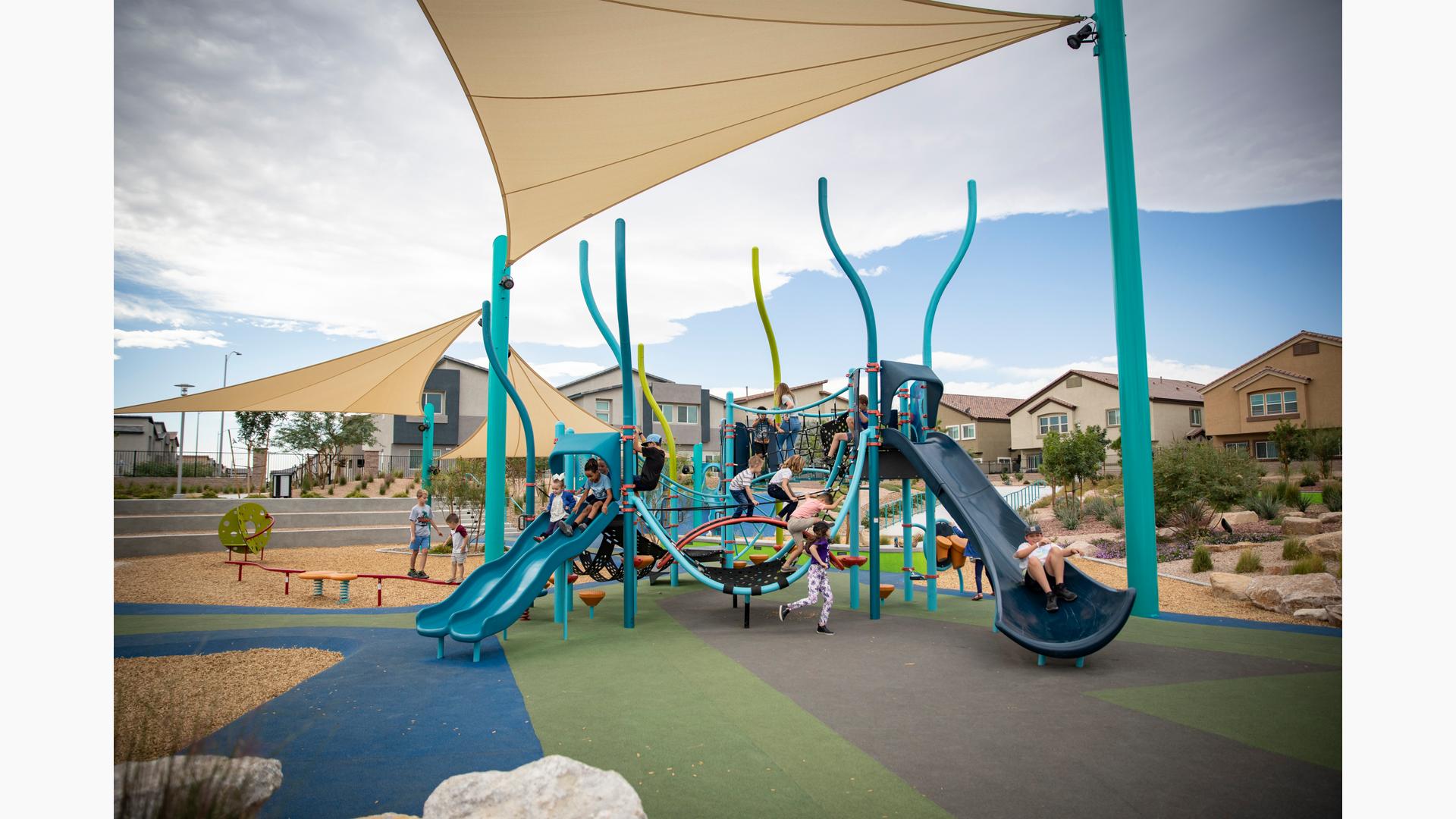 Contact Your ConsultantGalaxy Park is home to a widespread playground featuring the Smart Play® BeachComber® playstructure. Kids ages 5 to 12 will love navigating the variety of climbers like the Tidal Wave Climber, Traveler Climber, Belt Bridge and Balance Climber, and Sunbeam Climber. Plus, they'll find thrilling rides available from the Alpine® Slide and Double Wave Slide. In addition to the playground structure, there are loads of freestanding play components sprinkled throughout the space for more fun. Kids can get more climbing adventures on the Lunar Blast® Net Climber, Global Motion® and GeoPlex® 3-Spoke Tower, and sliding, spinning and rocking thrills in hillside slides, Curva® Spinners, and the Double Bobble Rider™ and the DigiRider® Rocket Ship.