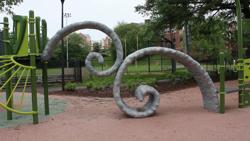 Where do mathematics, art and architecture, science and nature, and play all come together? At this amazing playspace in Washington, D.C.! Here kids of all ages can learn about—and play with—the Fibonacci Sequence, a numerical wonder that is found in more places in life than just a math book. Vivid, nature-inspired colors adorn the PlayBooster® playstructure, Evos® playsystem and Weevos® playsystem. Custom concrete spirals and Permalene® panels featuring other representations of the Golden Ratio bring the theme to life. It’s a virtual feast for both the mind and body.