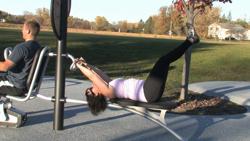 Video features the Health Beat outdoor exercise equipment Ab Crunch and Leg Lift system.