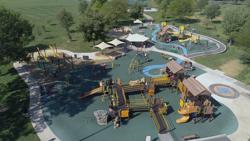 Aven's Village invites play for all at Island Grove Regional Park. This farm-themed inclusive playground, designed in partnership by Shane's Inspiration and Landscape Structures, welcomes individuals of all ages and abilities to learn, play and grow together. Custom roofs, concrete-sculpted chickens, farm-themed activity panels including Talking is Teaching panels from Too Small to Fail, and custom graphics in the rubberized playground safety surfacing make this design a farm-filled play experience. Even more, the OmniSpin® spinner, Oodle Swing®, ZipKrooz® Assisted, Molded Bucket Swing Seats in addition to various playground slides, climbers and more create a destination for entire families for hours of fun and active play.