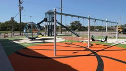 Contact Your ConsultantJeff Triplet Community Center is home to a sports-themed playground. The main feature is the 12' PlayOdyssey® Tower, which delivers an adventure for kids ages 5 to 12. As kids journey to the top, they'll find sports-themed climbers and activity panels along the way. Then they can coast down the never-ending slides. Even more, a Global Motion® was customized with DigiFuse® panels so kids can climb, rotate and explore two levels in the sports-themed rotating climber. Playground swings with a variety of swing seats including the Friendship® Swing were included in the design, along with unitary playground safety surfacing with custom graphics.