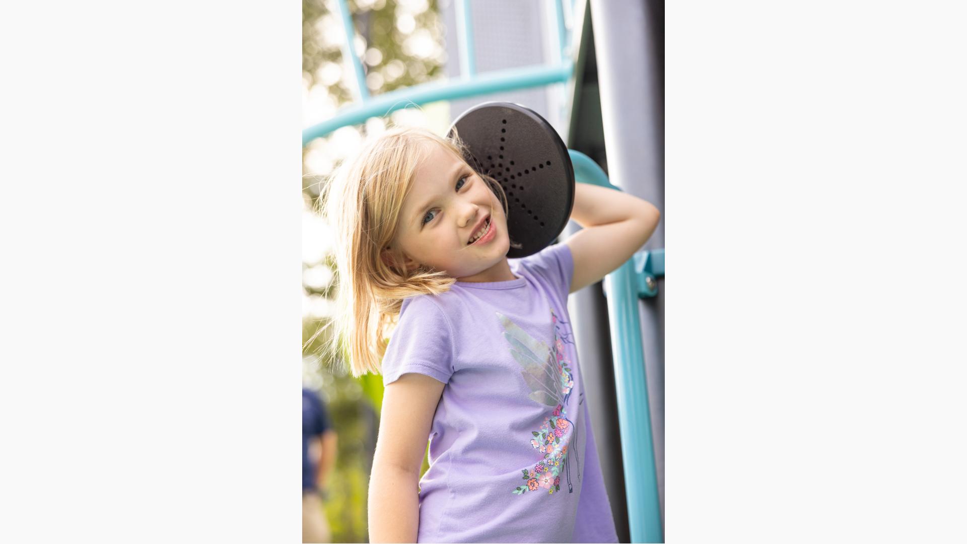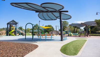 And what's more, the yellow center of the flower is a shady spot for caregivers to sit, relax and watch the play around them. Looking to cool off? An Aquatix® splash pad is nearby, shaped like a friendly bee.