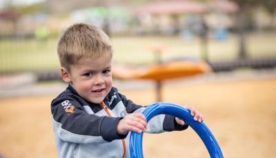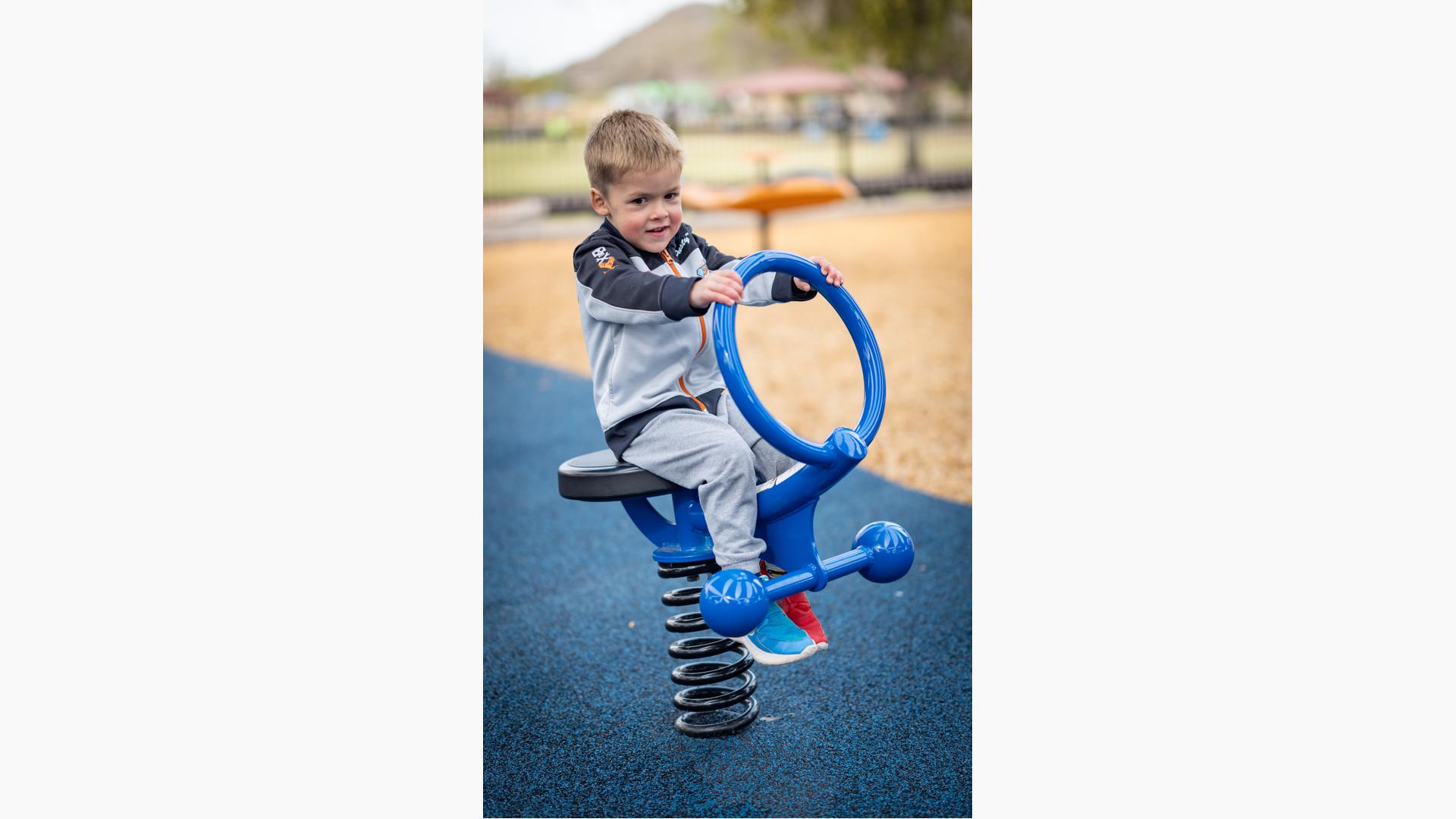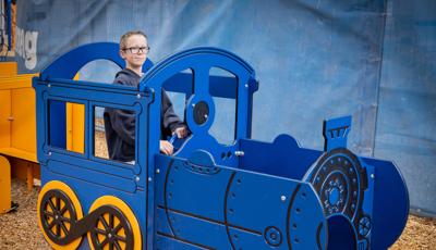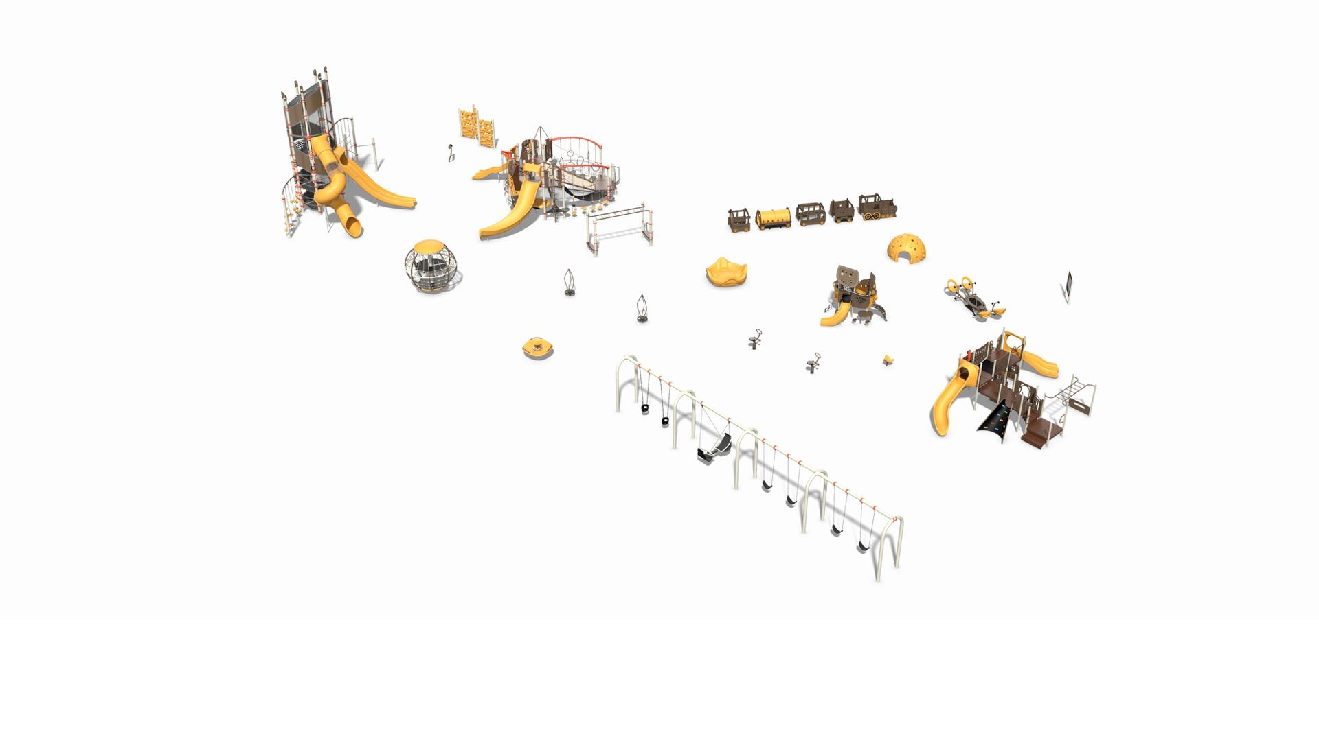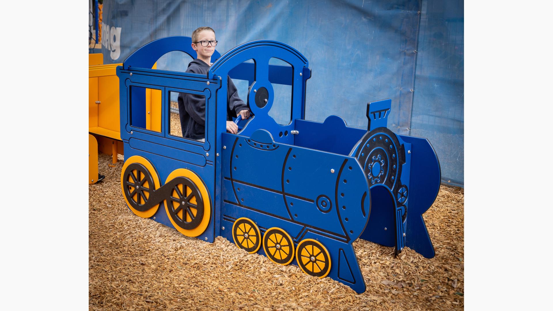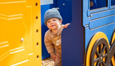 Playing off the railway theme, there's a custom train play structure for 2- to 5-year-olds made up of an engine, three cars and a caboose—all with their own imagination-boosting interactive play elements. Also in the preschool section, there's a Smart Play® Motion playstructure and a PlayShaper® playstructure offering endless possibilities for climbing, sliding and exploring.