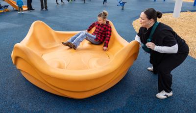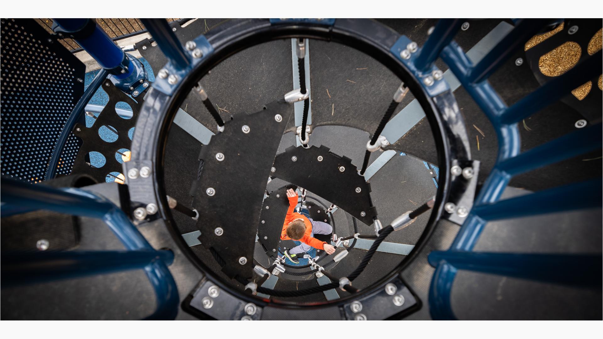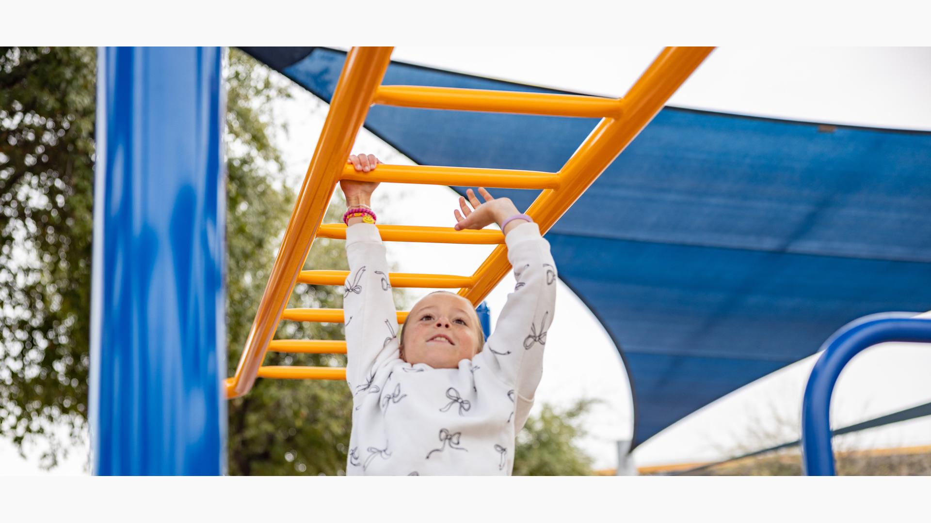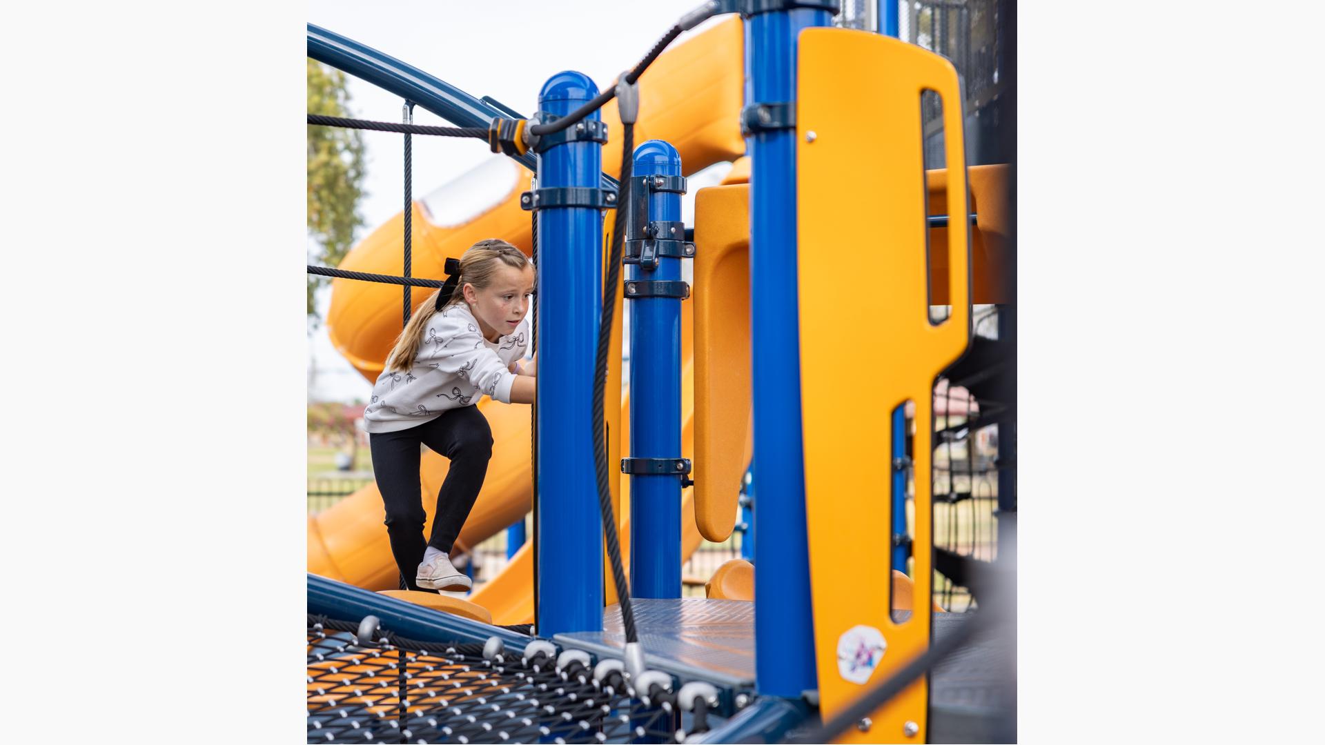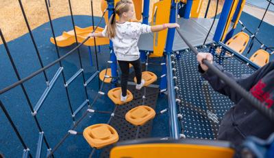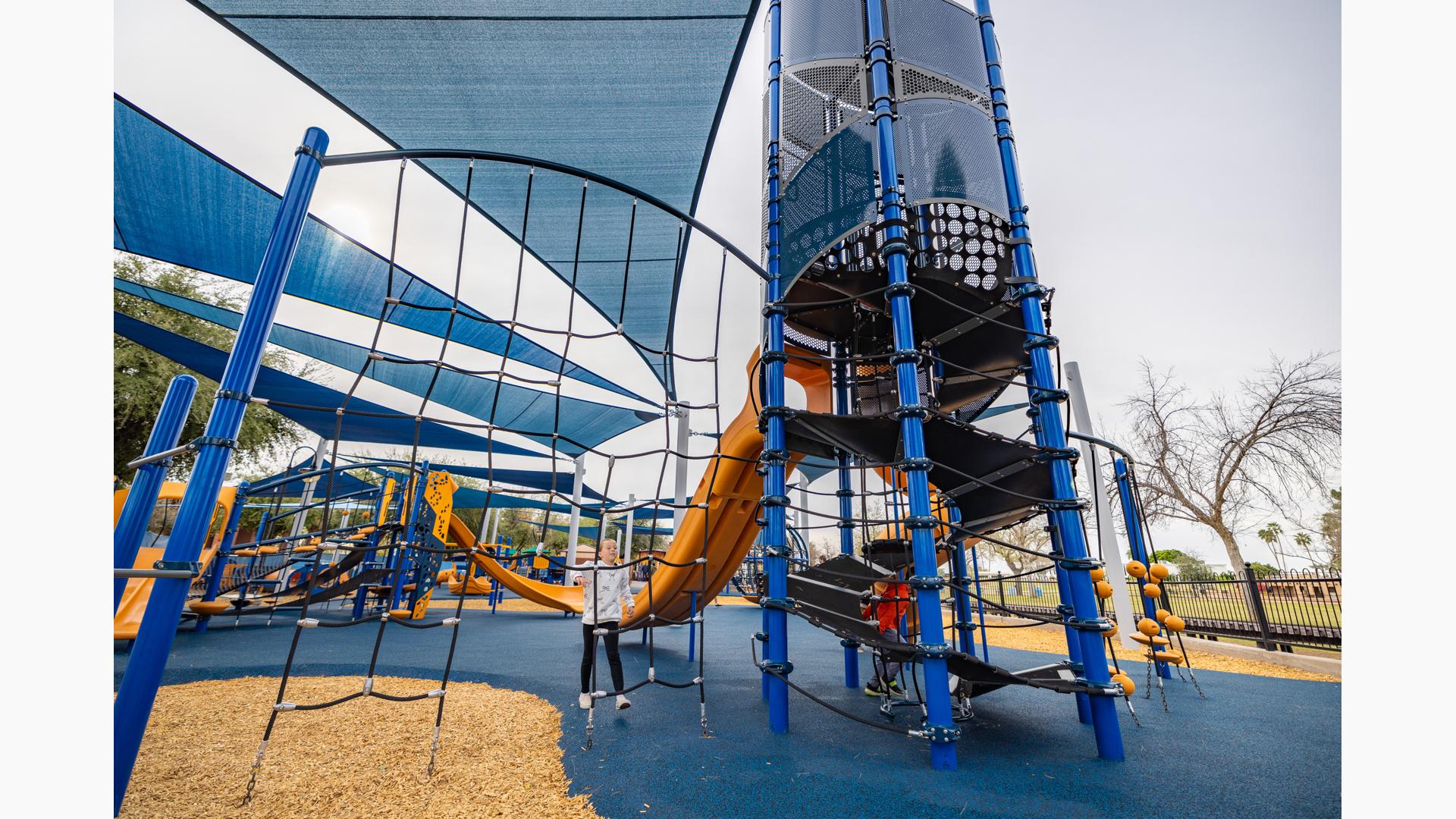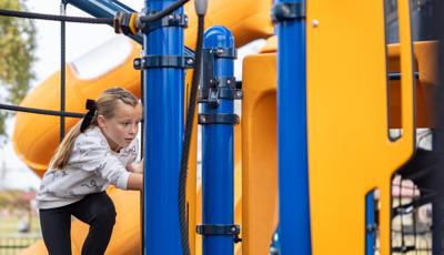 For children ages 5 to 12, there is a towering 12' Super Netplex® with spiral and double slides, and a Volo® playstructure featuring tons of play options like sliding, climbing and overhead challenges.