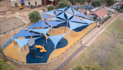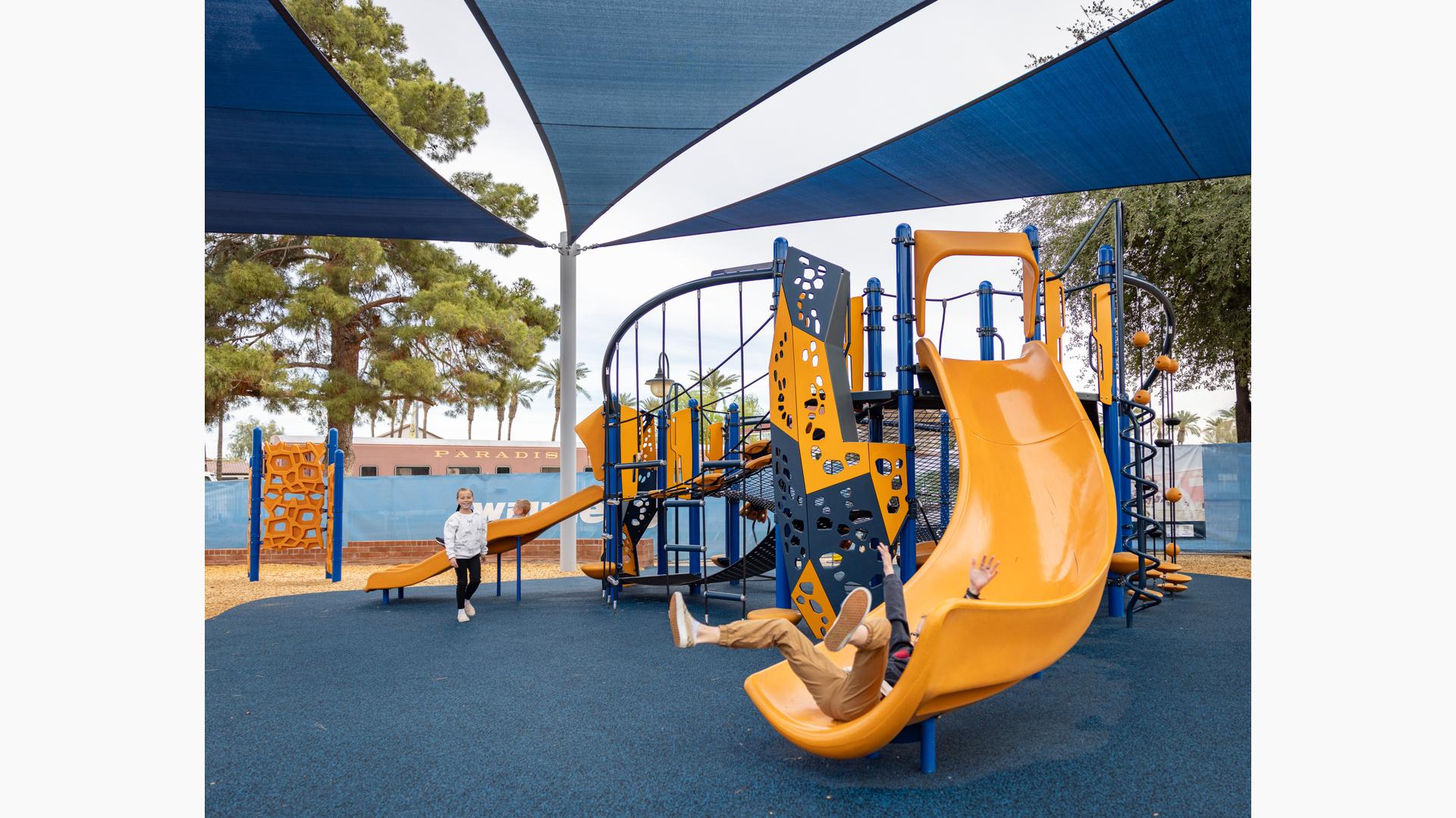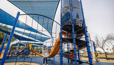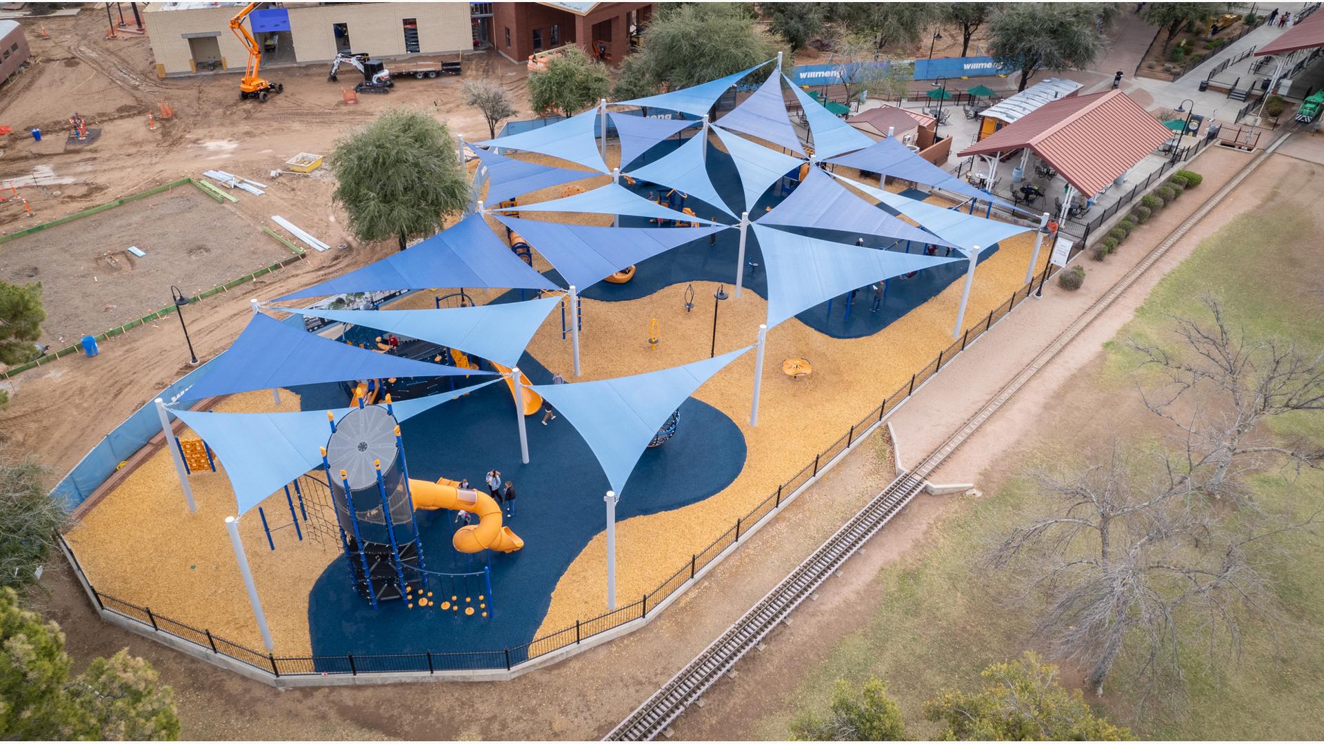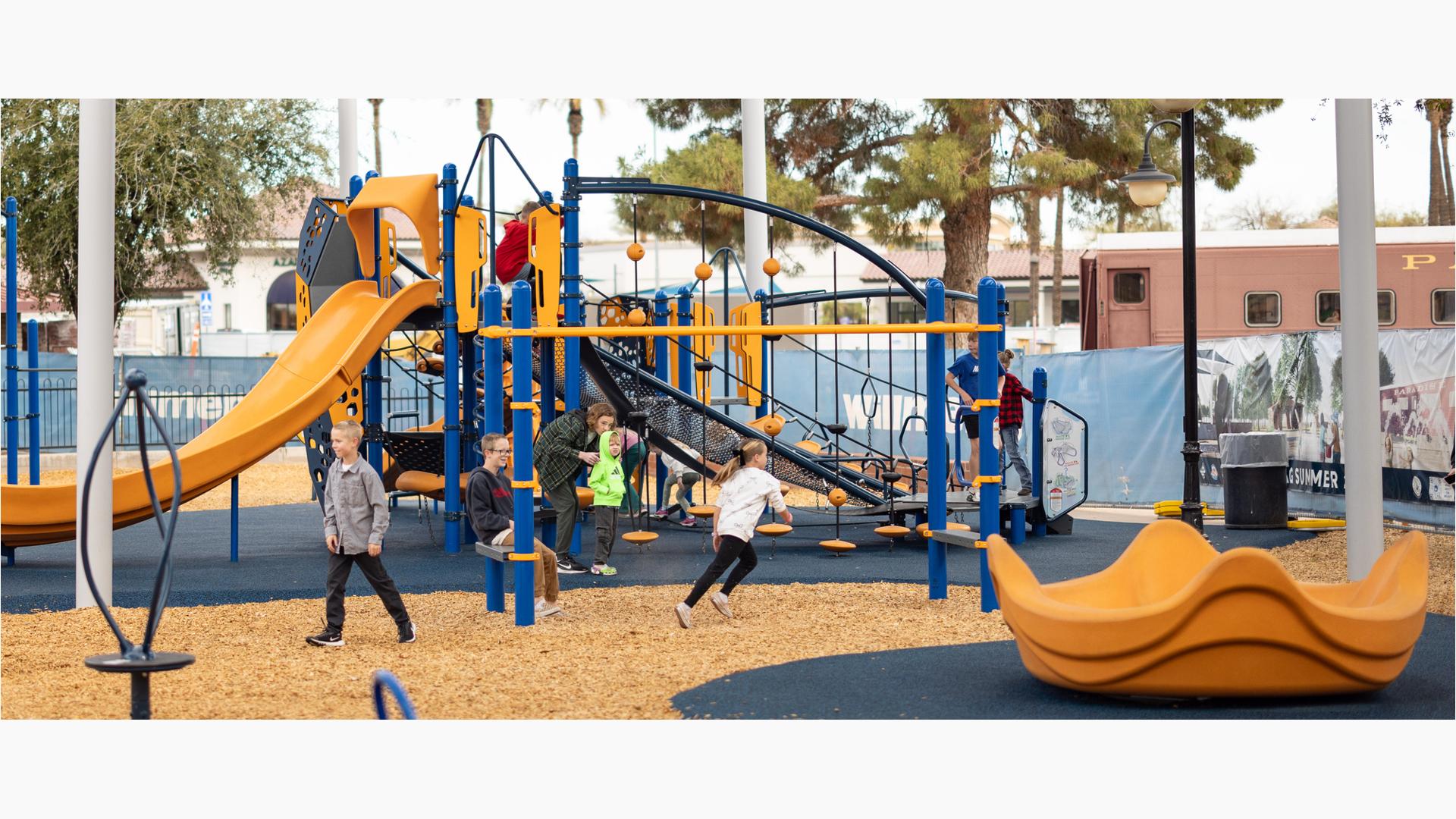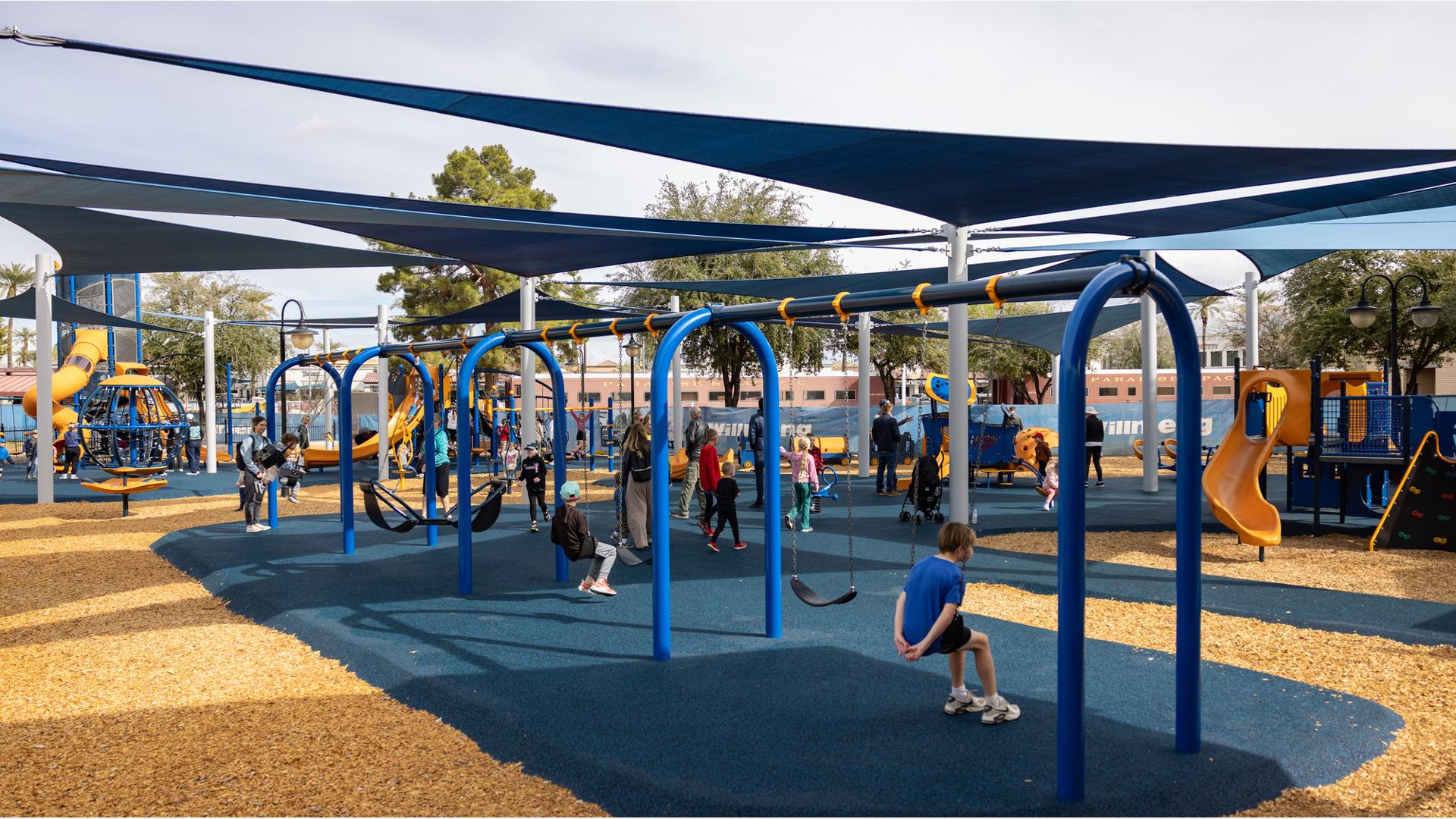 Contact Your ConsultantThe playground at McCormick-Stillman Railroad Park is an oasis of climbing, swinging and spinning fun amid a unique railroad history park in Scottsdale, Arizona.