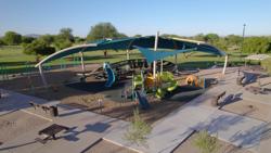 Video features a Landscape Structures custom playground and shade installation at Monterey Park in Mesa Arizona.