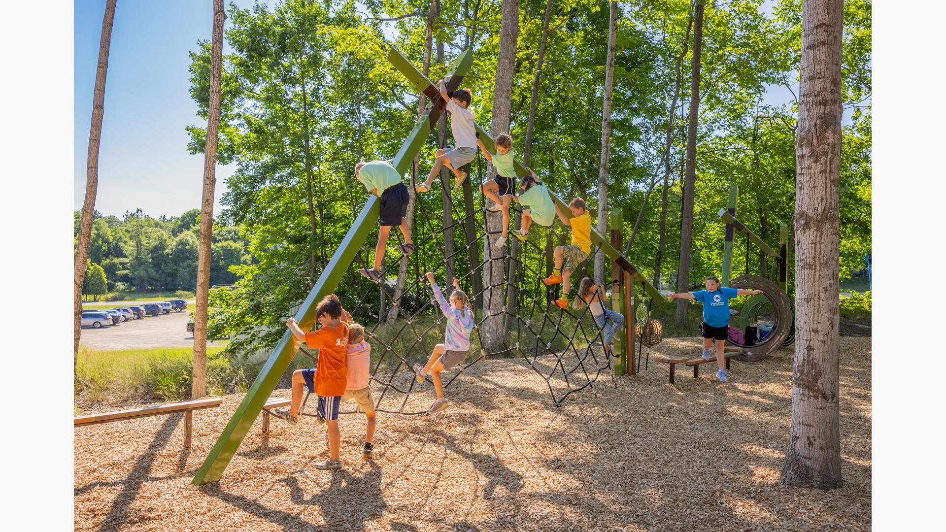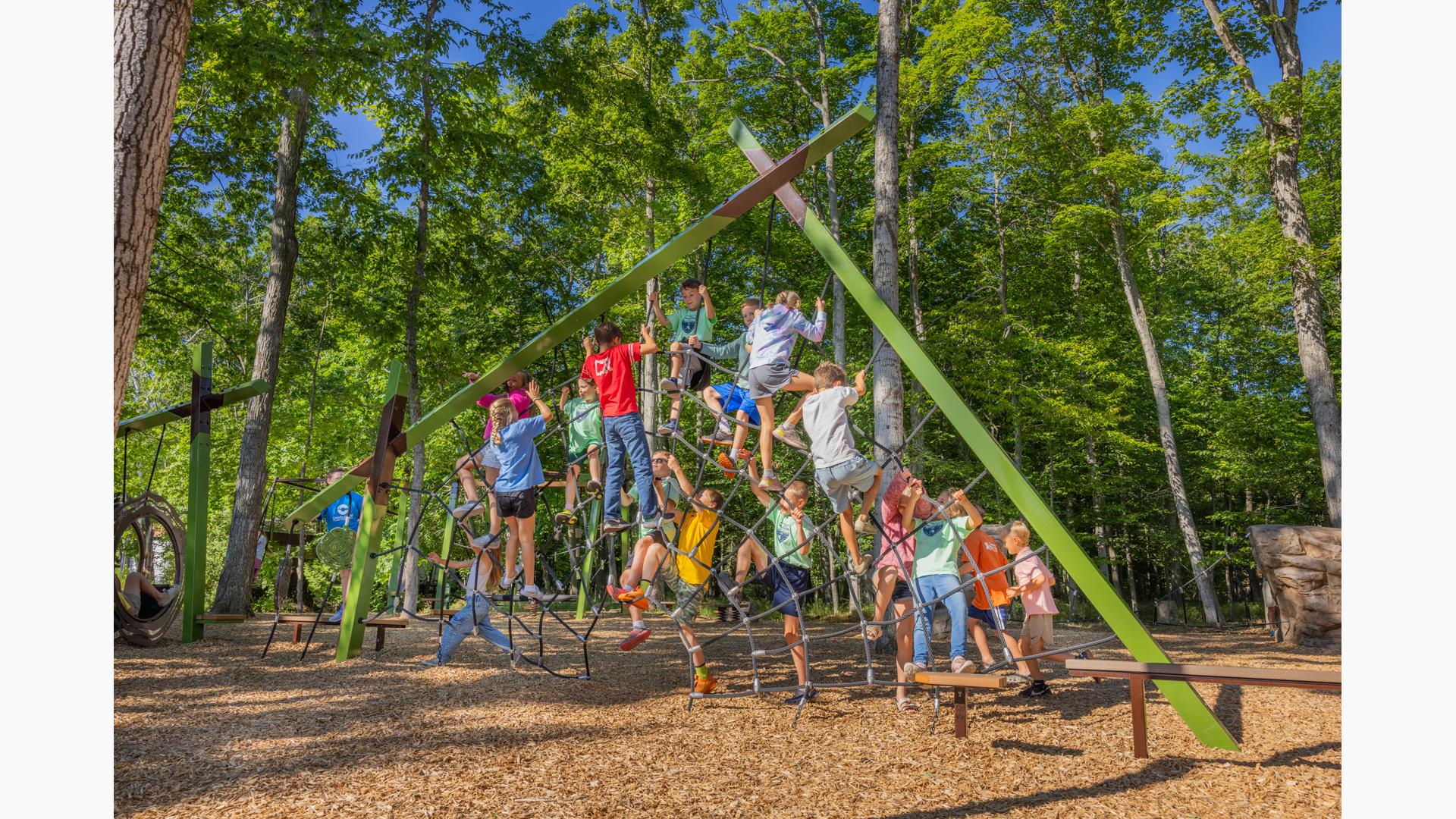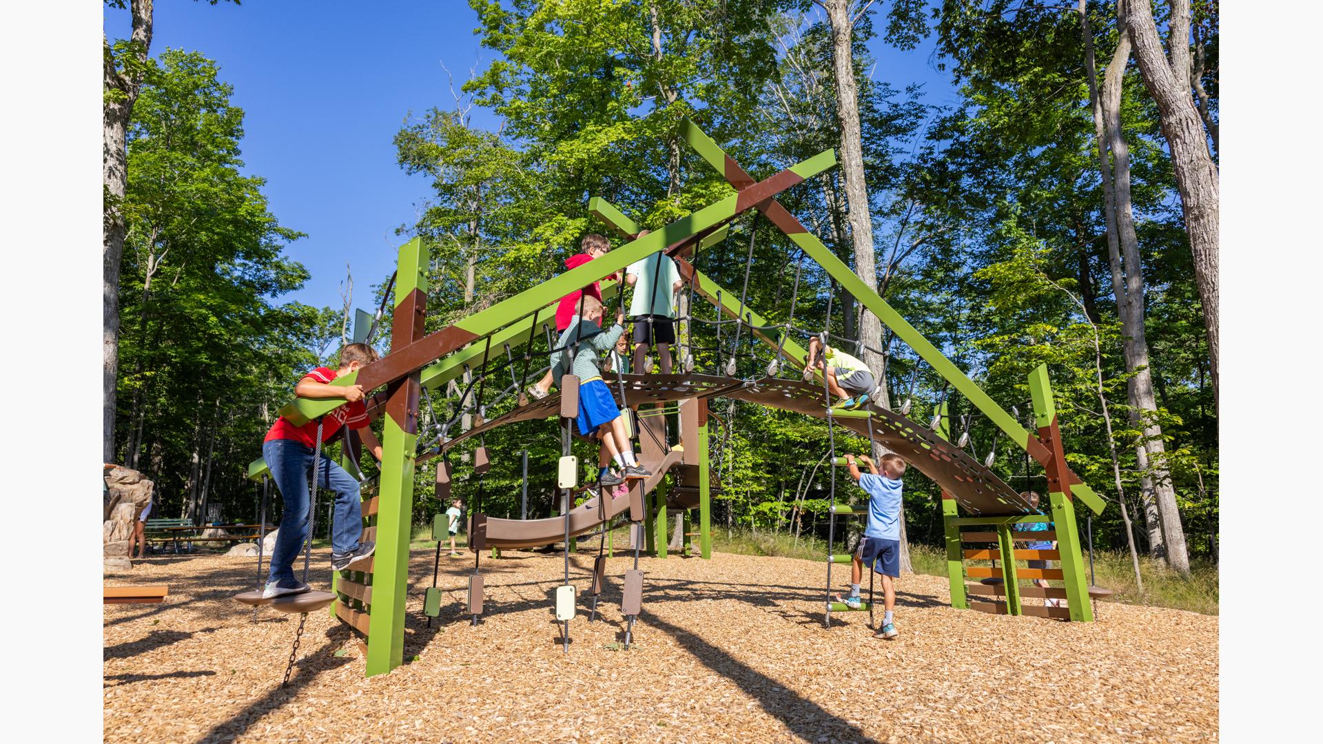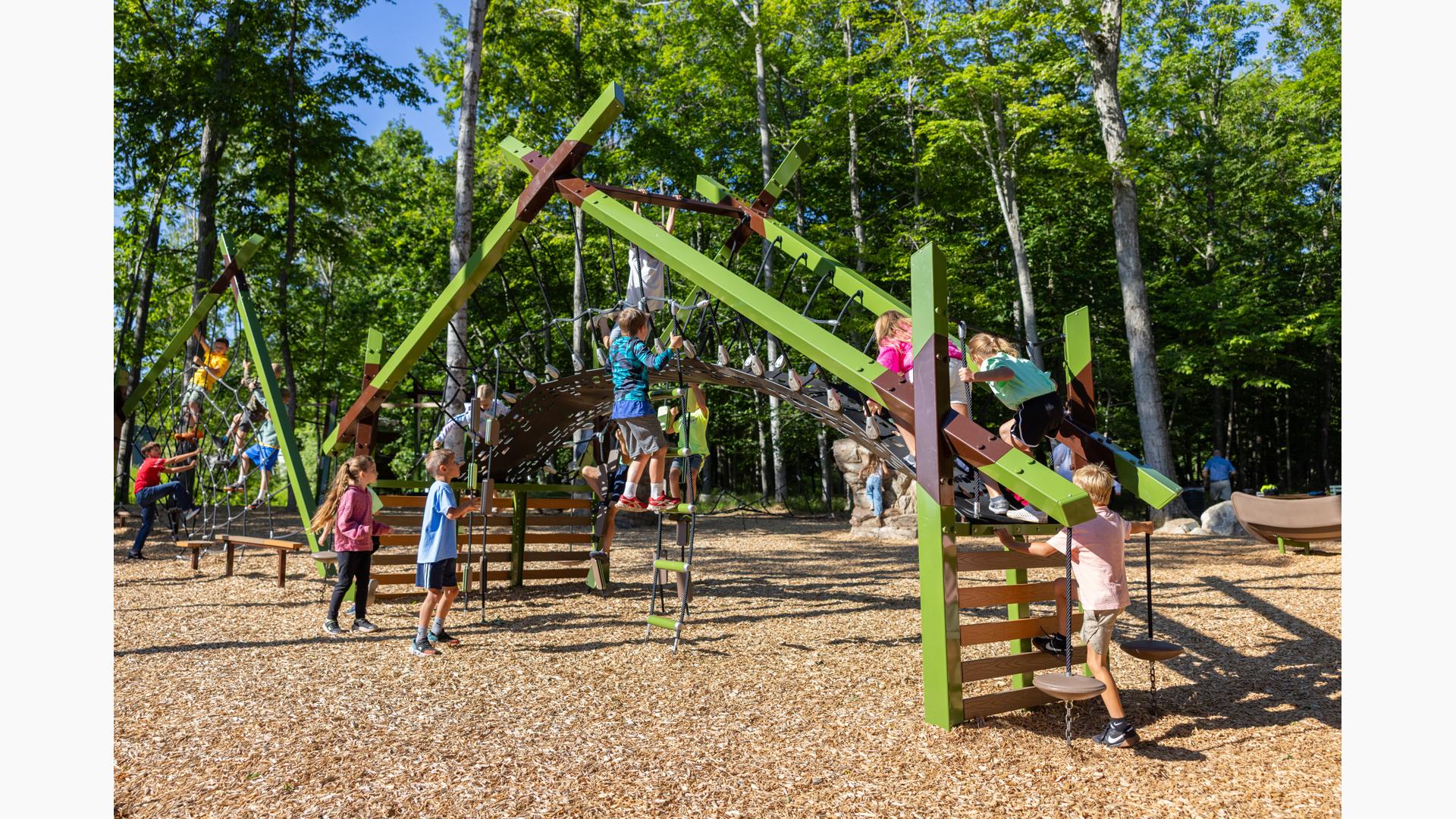 Children ages 5 to 12 will love the adventure they'll discover on such novel and unique play structures as the Foxtrot® Multi-Climber and the Forge® Climber, both of which offer a non-traditional play experience children will enjoy.