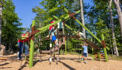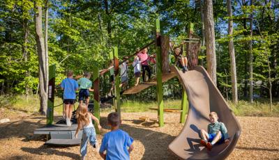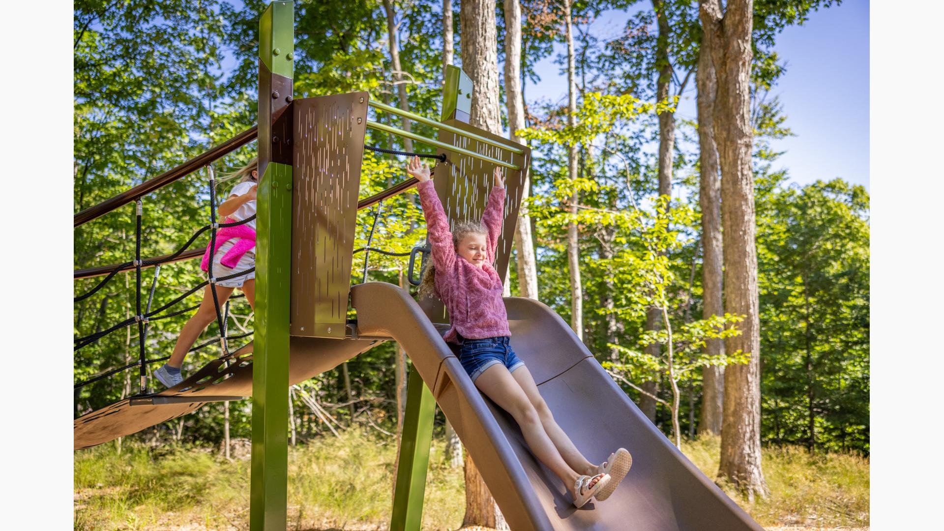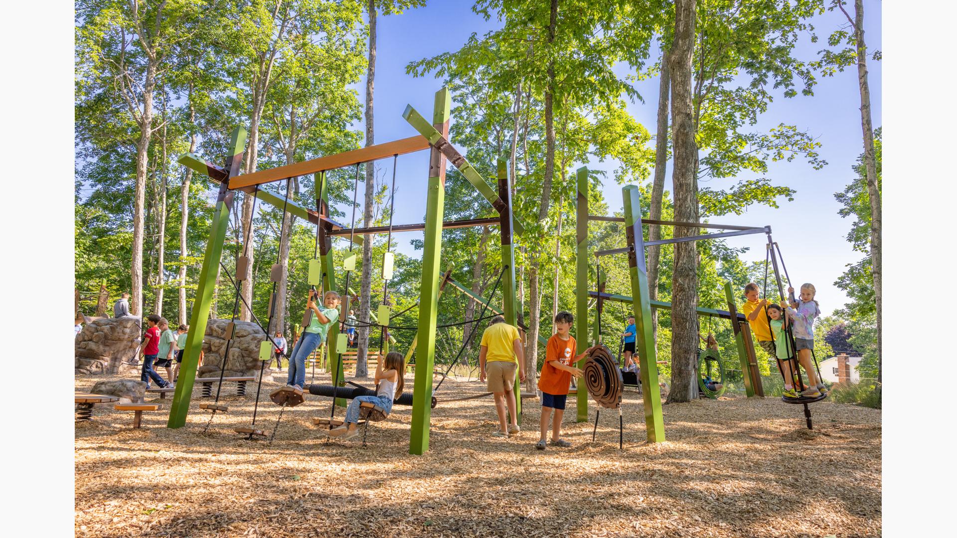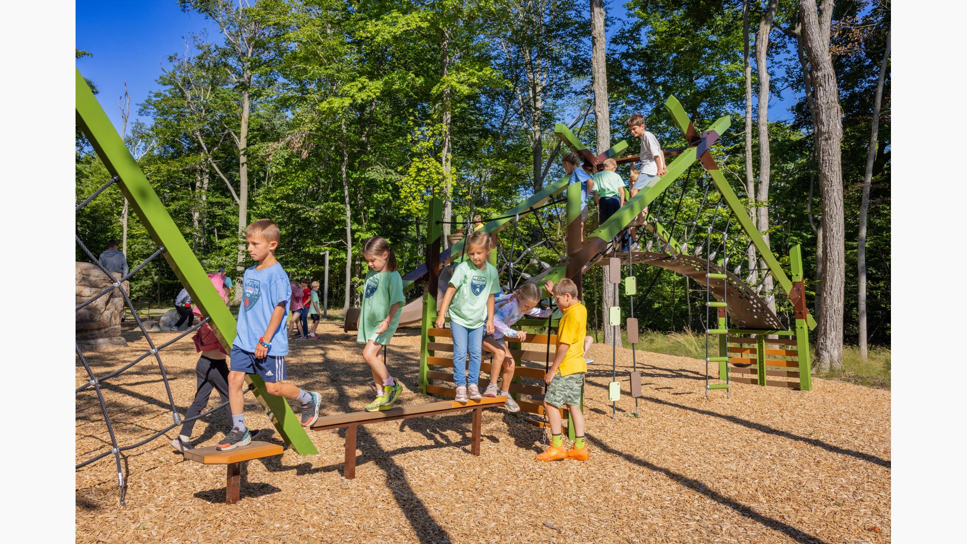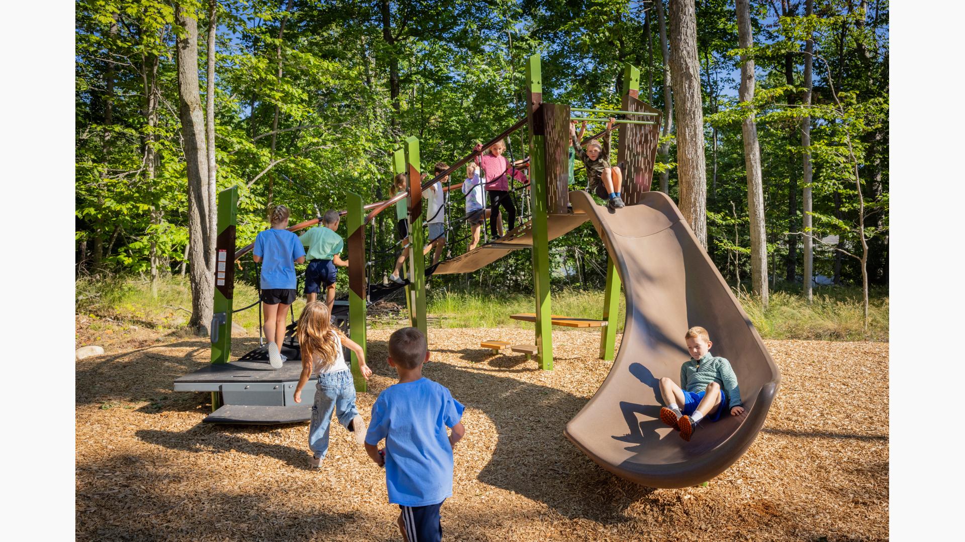 Contact Your ConsultantForest and play flow together in this picturesque nature-inspired playground in Charlevoix, Mich. The straight lines and angles of the modern, architectural Forma™ play structures perfectly reflect the tall trees of the surrounding area.