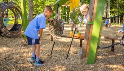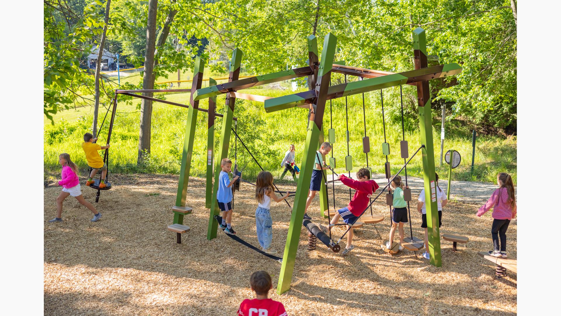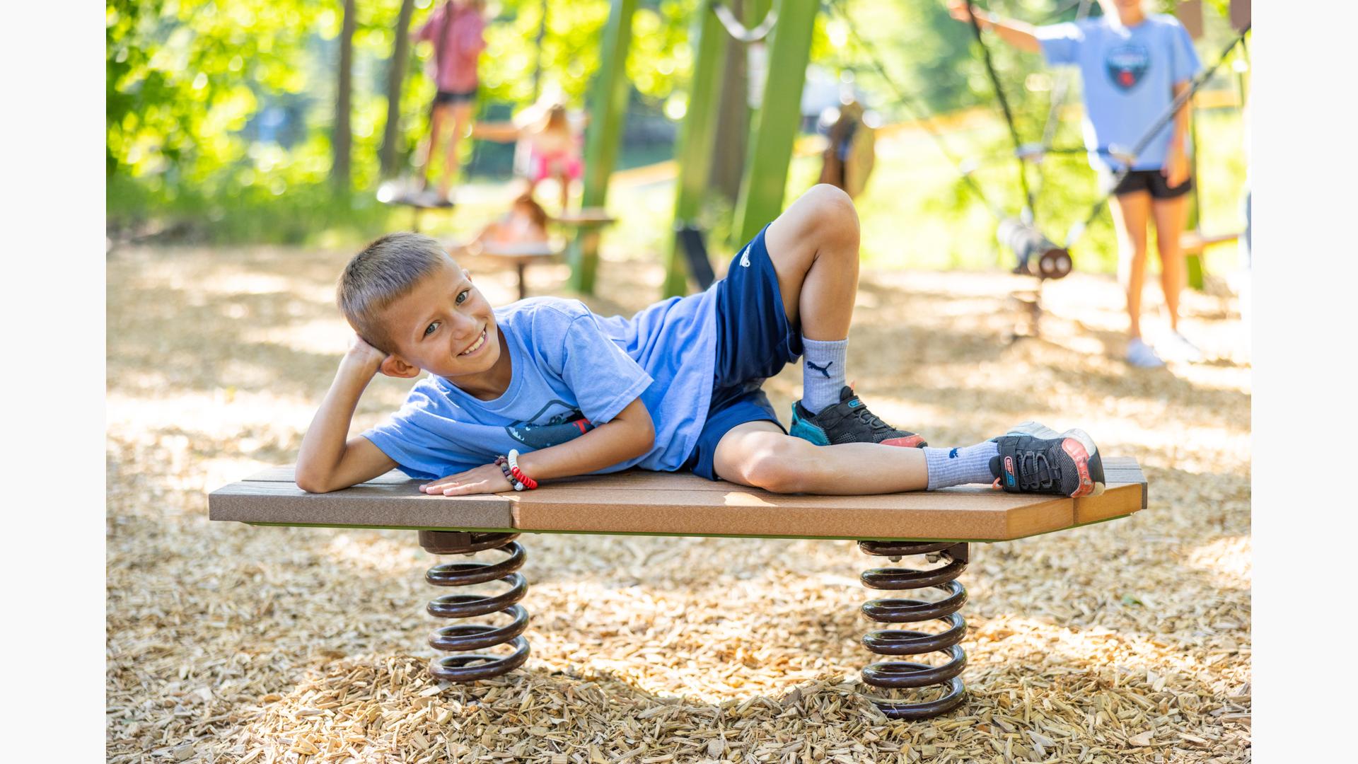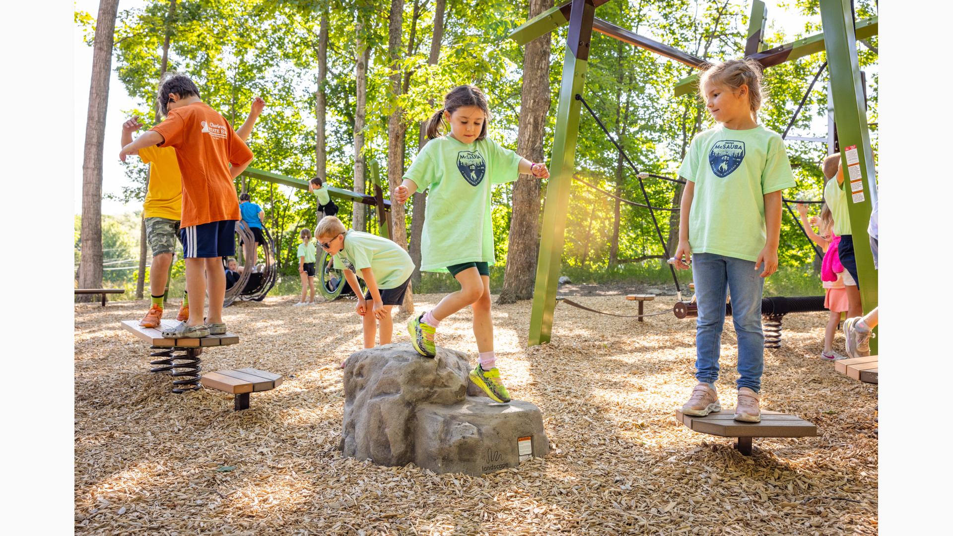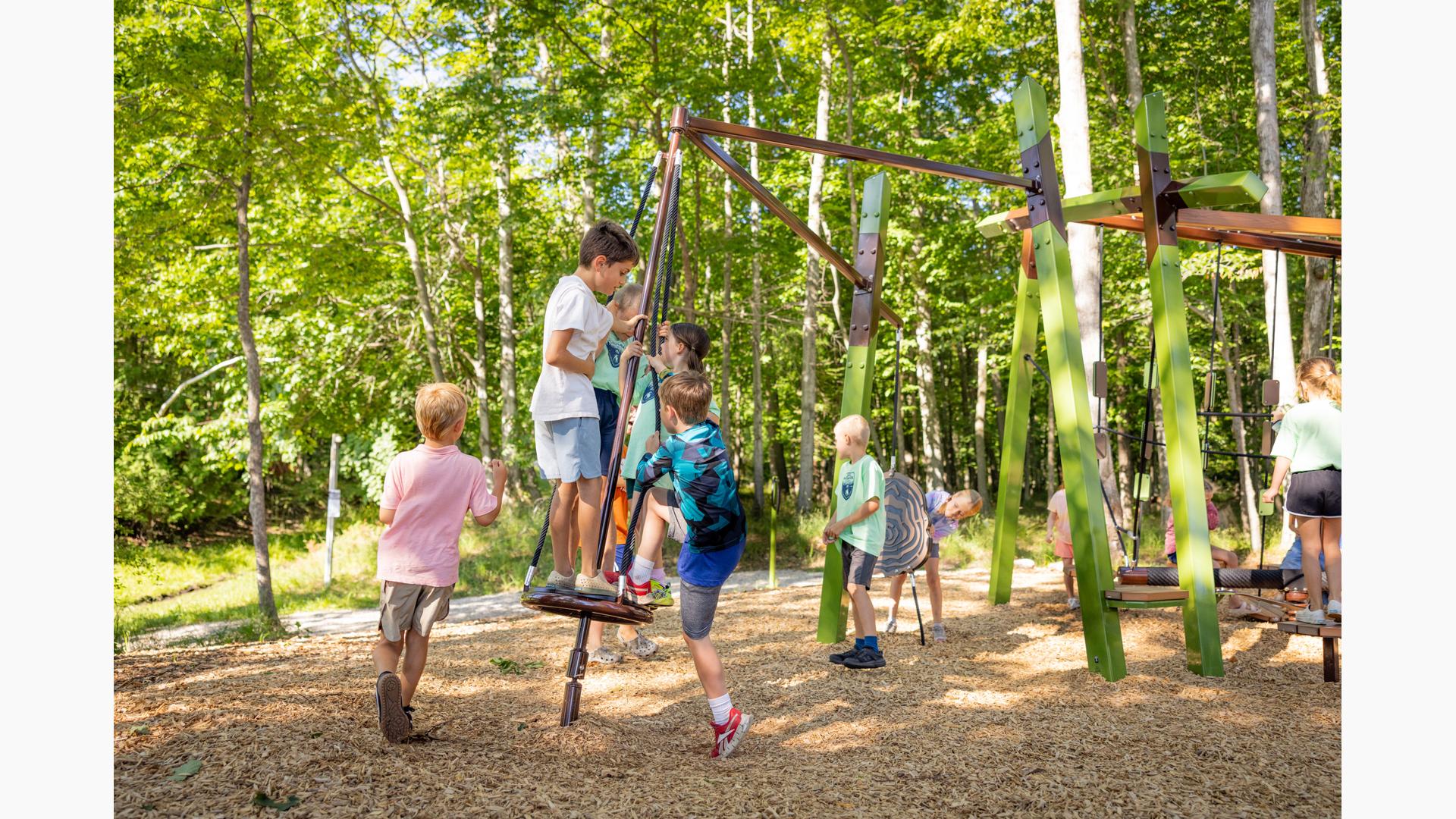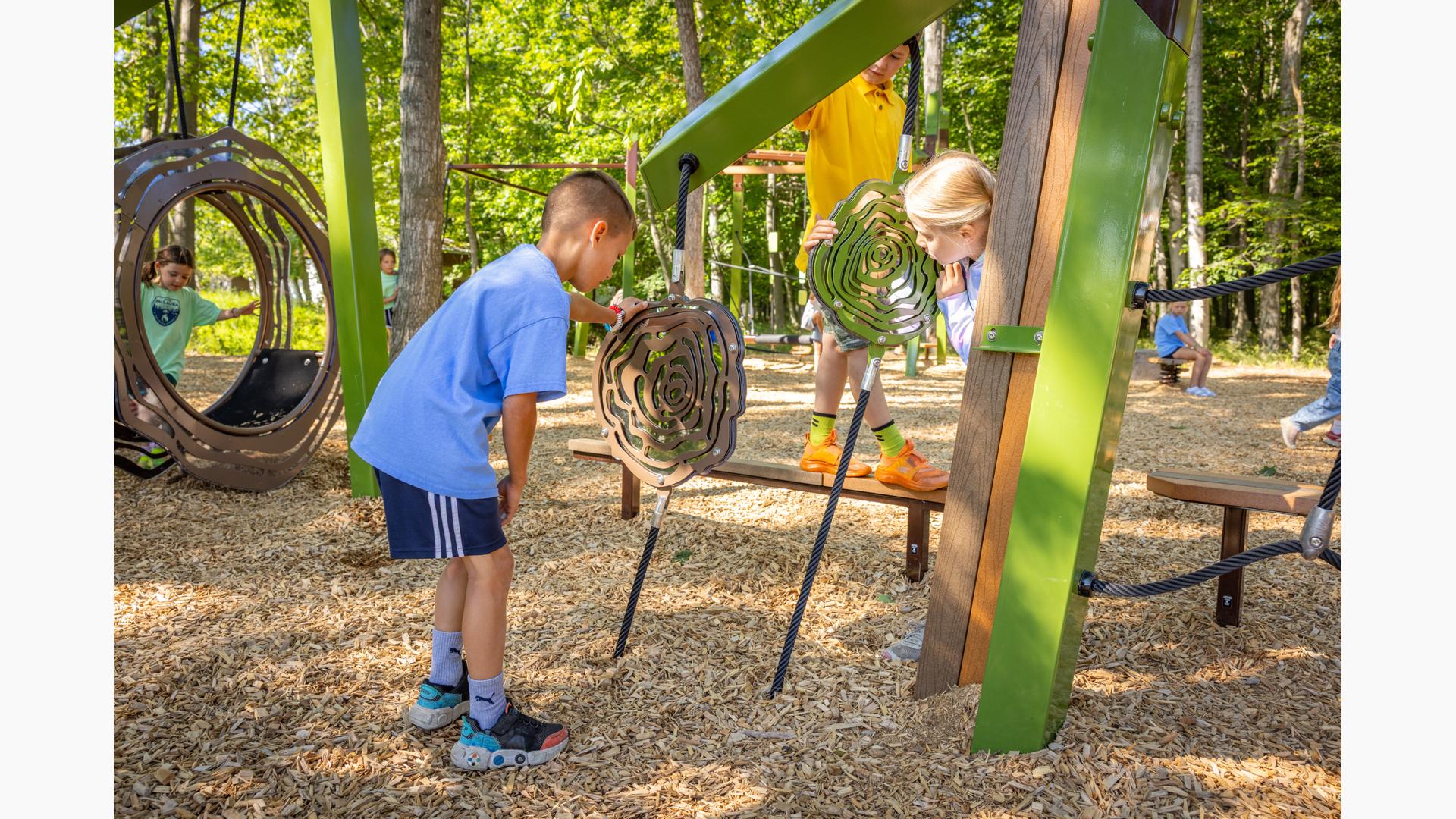 Kids looking for motion to stimulate their vestibular system will appreciate the Sol™ Spinner, Footprint® Wobble Bouncer and the several balance options, including the Folio® Balance Climber. No play route or experience will be the same at this unique modern - yet timeless - playground.