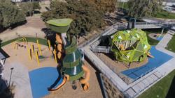 Pioneer Park was renovated to include a 9,000 square-foot, multi-story playground. The inspiration for the playground design was the three types of trees found in the park—pistache, palm and mesquite. Collaboration between Landscape Structures and Dig Studio led to the creation of this safe and accessible themed playground. In addition to the epic tower structures, there are net climbers for challenge, thrilling slides and hangout spaces throughout the design. Plus, freestanding swings and spinners deliver more opportunities for children and entire families of all abilities.