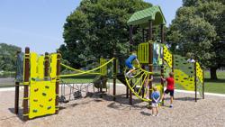 Contact Your ConsultantSoldiers and Sailors Park in Monroe, Michigan is a lovely lakeside playground featuring all the play options children love in a compact footprint. Kids’ drive to climb higher will be satisfied with the multiple levels of decks to surmount as they choose between wall climbers and ladder climbers to get there. There’s also the springy Seeker Climber that connects the two raised play platforms that kids will find an exciting wobbly challenge. A twisty slide or a straight slide provide more choices for descending the structure’s heights and nature-inspired play options like the Log Crawl Tunnel and Balance Beam connect the playground to the beautiful wooded surroundings. A Marble Panel® and a Digifuse® Periscope Panel provide visual and tactile stimulation during play.