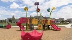 Video features a butterfly, caterpillar, and flower themed PlayBooster playground at Turnberry Park in Commerce City Colorado.