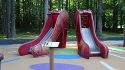 Follow the Yellow Brick Road to the Wizard of Oz-themed playground! The playground design is a literary dream as it tells the story of L. Frank Baum's "The Wonderful Wizard of Oz," from Auntie Em and Uncle Henry's Kansas farm to the poppy field, Emerald City and Dorothy's attempt to get home via hot air balloon. Even more, Dorothy's ruby slippers were adapted to be playground slides! Kids of all ages and abilities will use their imaginations as they explore this destination playground, and the surrounding park.